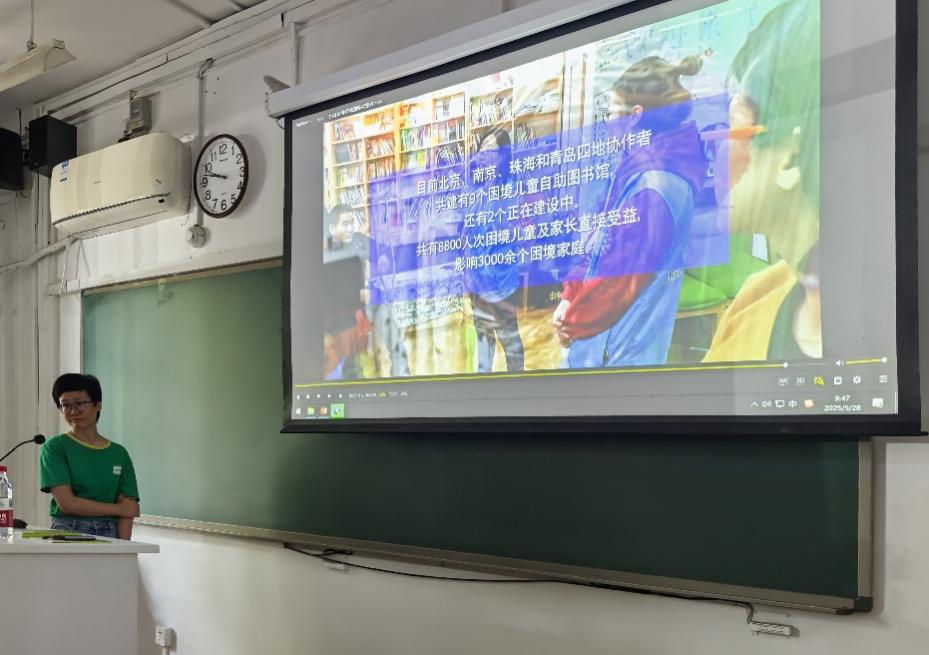 2025年5月28日上午9:00,社工督导进课堂系列“儿童青少年社会工作实务经验与困境——以协作者‘童缘’为例”专题讲座在william威廉中文官网海淀校区教二106教室举行。本次讲座邀请北京协作者中心副主任、2014年“中国最美社工”称号获得者卢金艳老师担任主讲嘉宾,william威廉中文官网副教授周群英老师担任主持人,24级社会工作专业硕士参与交流。