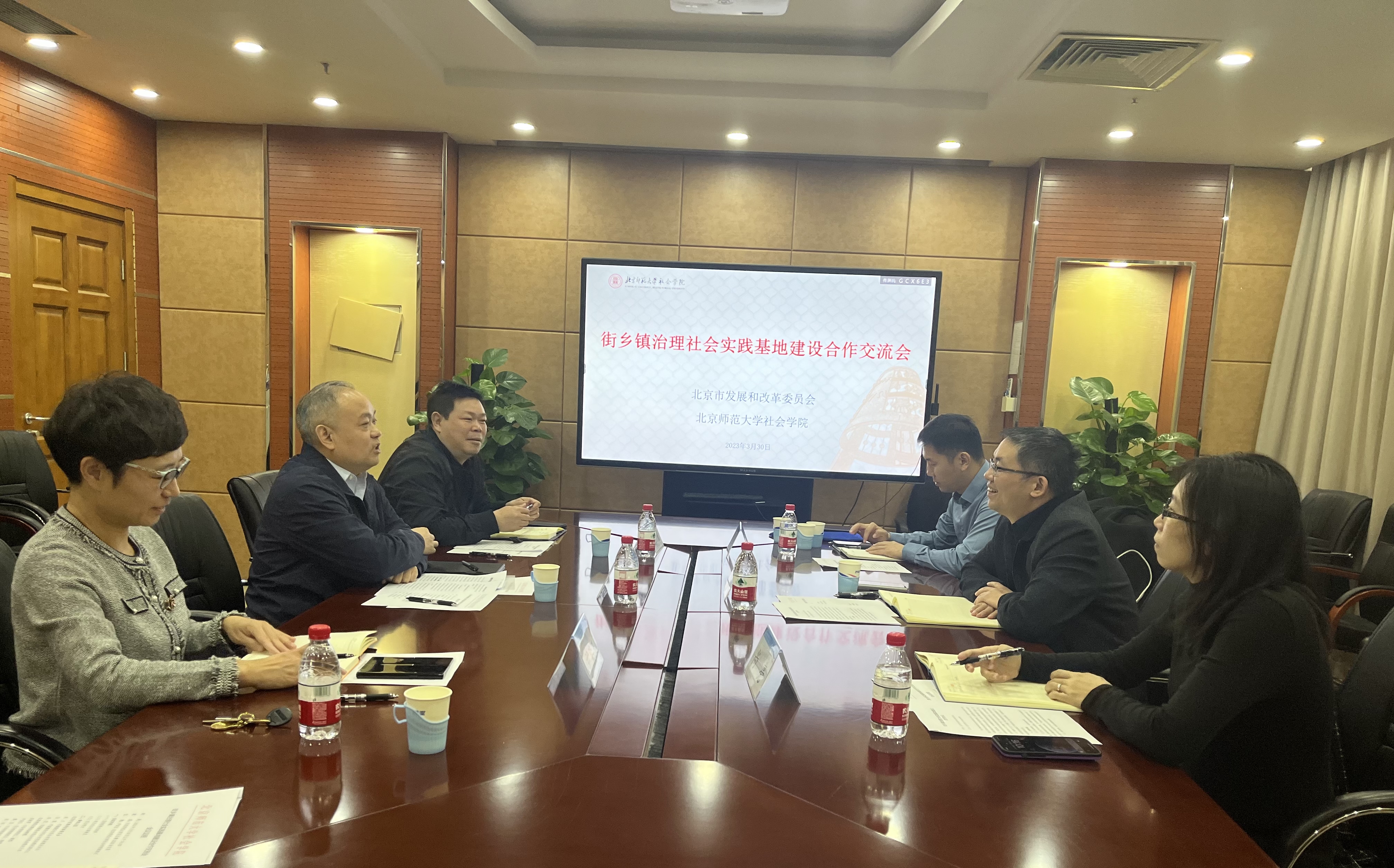 2023年3月30日,北京市发展和改革委员会疏整促专项办专项治理处赵力处长、孙骁副处长和尚亮同志一行,应邀来公司交流街乡镇治理社会实践基地建设事宜。屈智勇经理、魏欣副经理和陈炜老师出席,尹栾玉副经理主持会议。